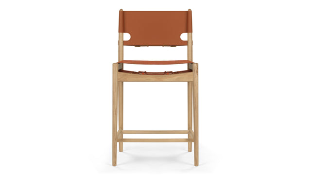 Aksel Counter Stool, Whiskey Brown Vegan Leather and Ash