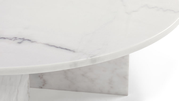 Sculptural and refined, the Olivia coffee table is made from premium, subtly veined white marble with a polished finish. The 35” round top allows plenty of space to style your favorite coffee table books and rest a glass without compromising on style, making it the perfect choice for luxe living spaces.