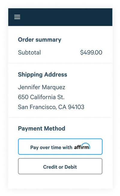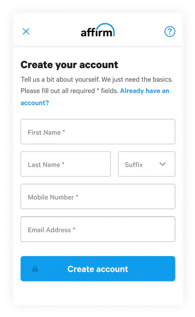 Select Affirm at checkout, then enter a few pieces of info for a real-time decision.