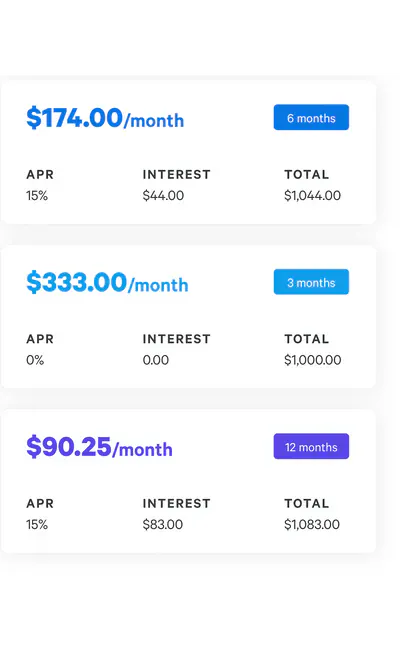 Pick the monthly payment plan you like best. You’ll never pay more than you agree to up front.