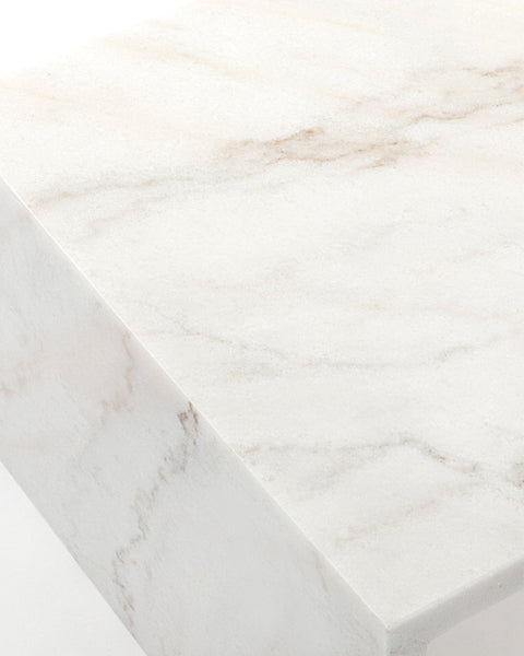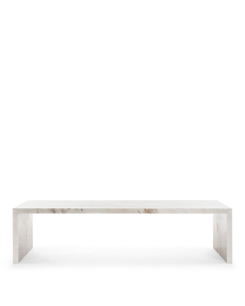 Made from three slabs of stunning white Italian marble, the Ares coffee table is understated in form, but makes a captivating centerpiece. The generous 47” rectangular top allows ample room for functional use and display, and the low profile feels fresh and contemporary.