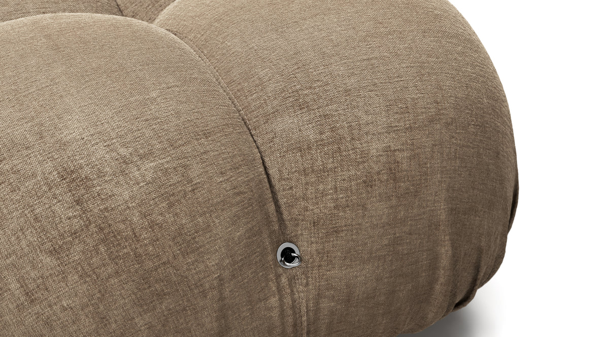 - Modular Instructions : Each section of the Mario Bellini Sofa is modular and is attached with string ties and carabiners. To assemble or rearrange your sofa, simply unclip the carabiners from one ring and attach to a corresponding ring on the module you wish to connect to.