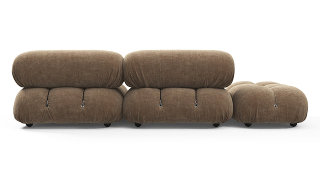 - Modular Instructions : Each section of the Mario Bellini Sofa is modular and is attached with string ties and carabiners. To assemble or rearrange your sofa, simply unclip the carabiners from one ring and attach to a corresponding ring on the module you wish to connect to.