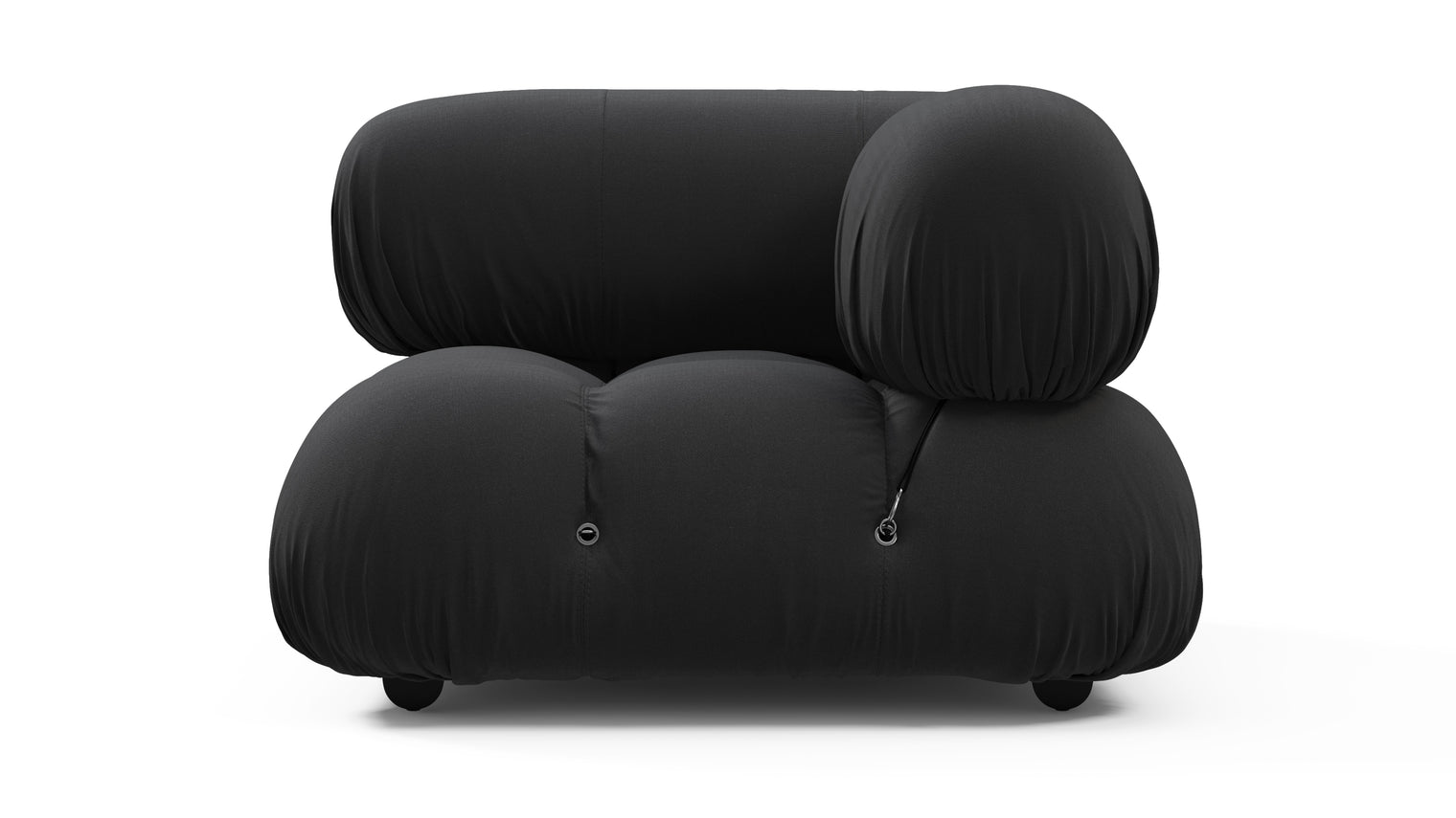 - Modular Instructions : Each section of the Mario Bellini Sofa is modular and is attached with string ties and carabiners. To assemble or rearrange your sofa, simply unclip the carabiners from one ring and attach to a corresponding ring on the module you wish to connect to.