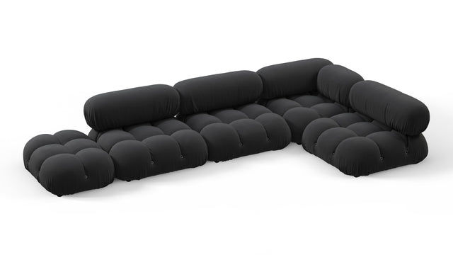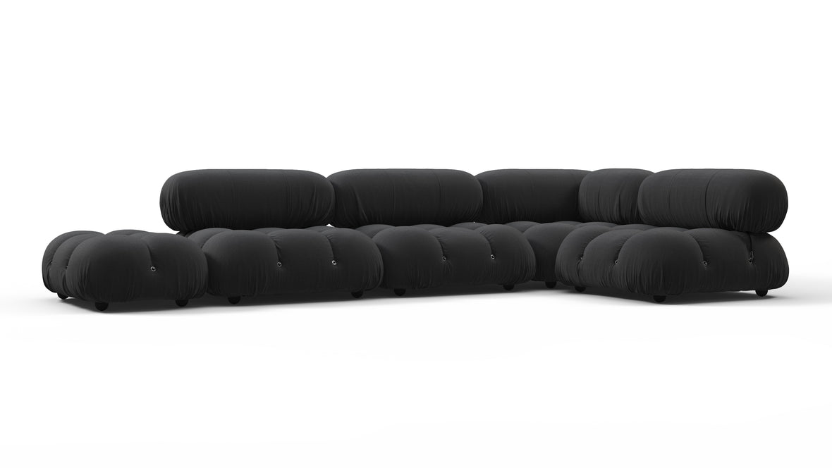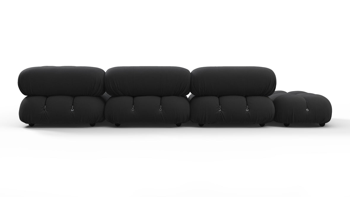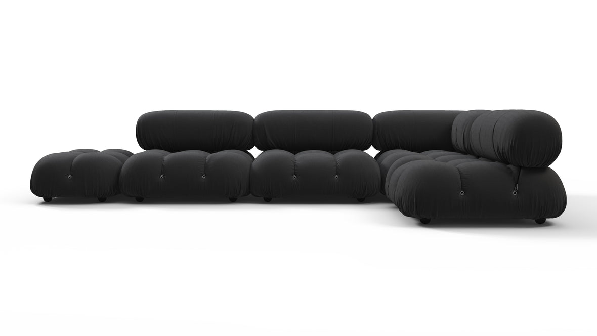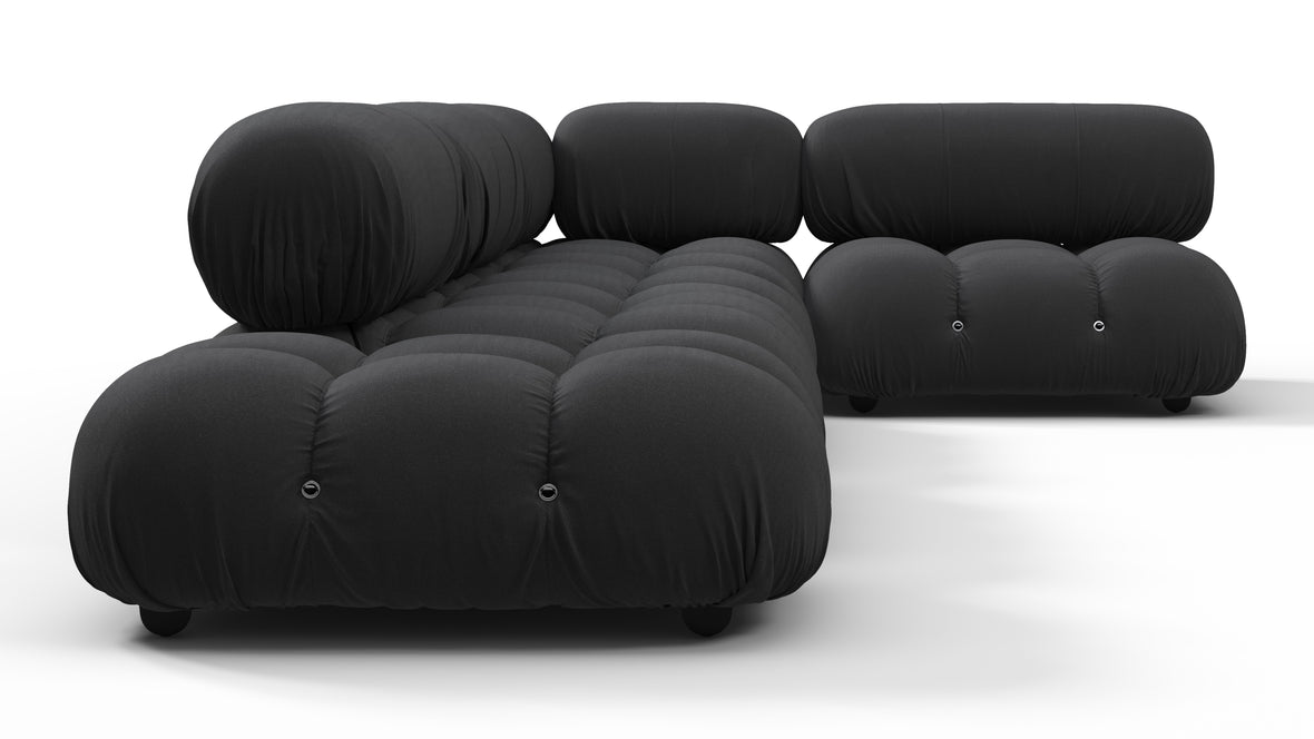 - Modular Instructions : Each section of the Mario Bellini Sofa is modular and is attached with string ties and carabiners. To assemble or rearrange your sofa, simply unclip the carabiners from one ring and attach to a corresponding ring on the module you wish to connect to.