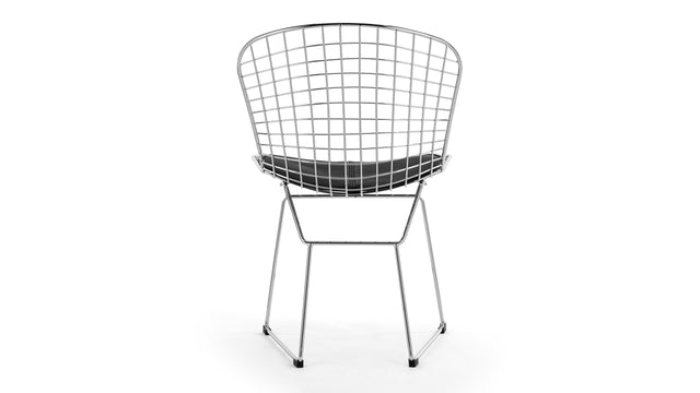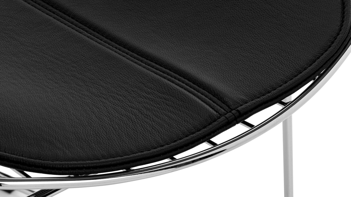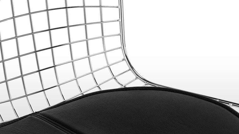 Precision-welded of steel wire with a classic leather seat pad, this chair is beloved for its fusion of engineering acumen and everyday comfort.