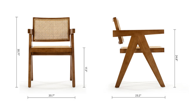 Inspired by an era marked by a focus on sleek lines and functional simplicity, this chair embodies the essence of the design trends prevalent during the 1950s. The Chandigarh Armchair's mid-century modern design is influenced by campaign-style furniture and showcases the beauty of natural of wood and rattan. The end result is a masterfully crafted seat that’s at once comfortable and long-lasting.