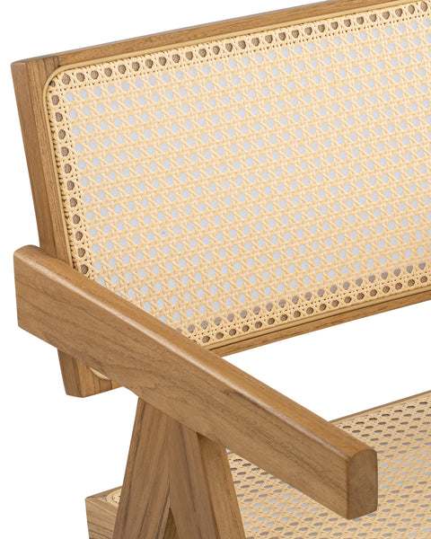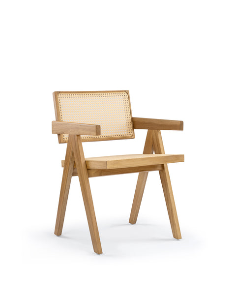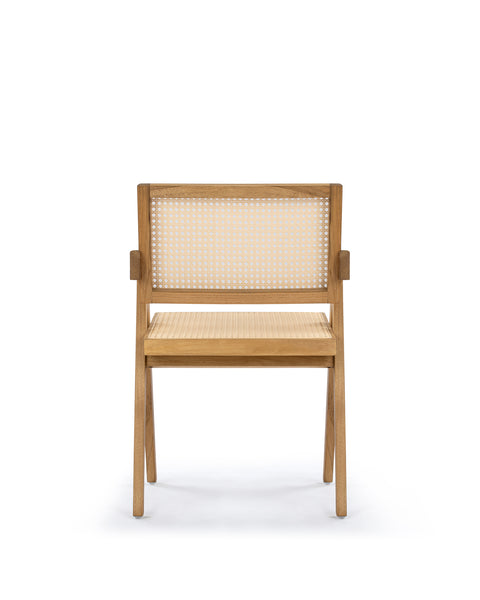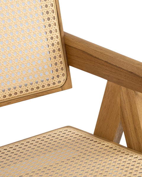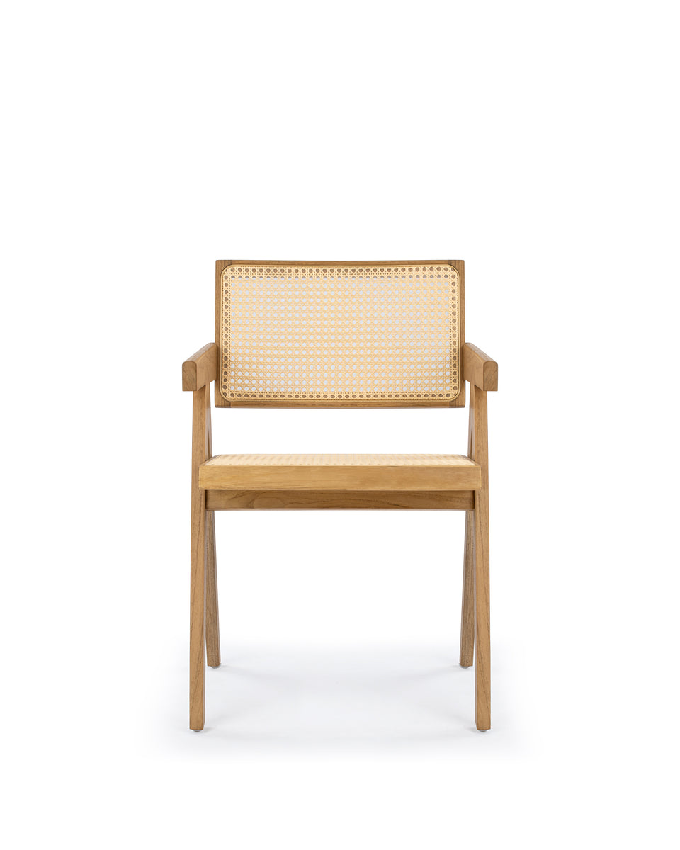 Embodying the sleek lines and functional simplicity of the 1950s, this outdoor chair reflects the era’s emphasis on refined craftsmanship. The Chandigarh Outdoor Armchair takes inspiration from campaign-style furniture, blending the beauty of natural teak and weather-resistant rattan. Designed for durability and comfort, this chair is a stunning addition to any patio, garden, or outdoor dining space.