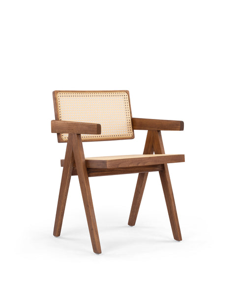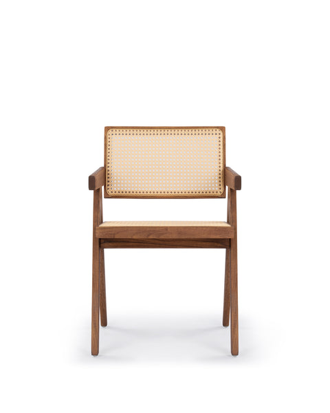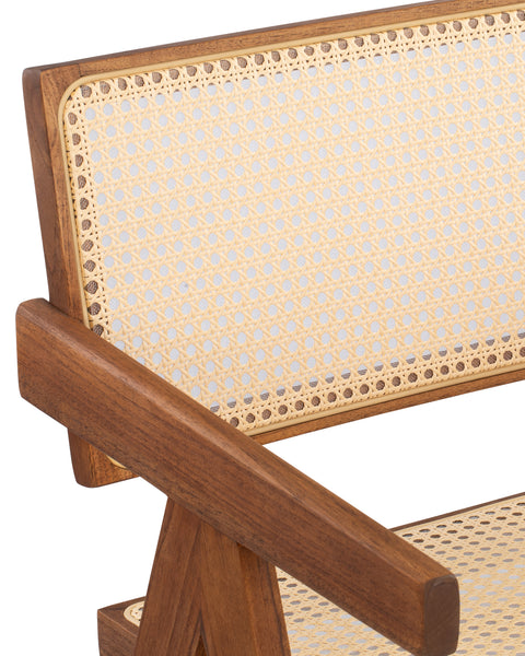 Embodying the sleek lines and functional simplicity of the 1950s, this outdoor chair reflects the era’s emphasis on refined craftsmanship. The Chandigarh Outdoor Armchair takes inspiration from campaign-style furniture, blending the beauty of natural teak and weather-resistant rattan. Designed for durability and comfort, this chair is a stunning addition to any patio, garden, or outdoor dining space.