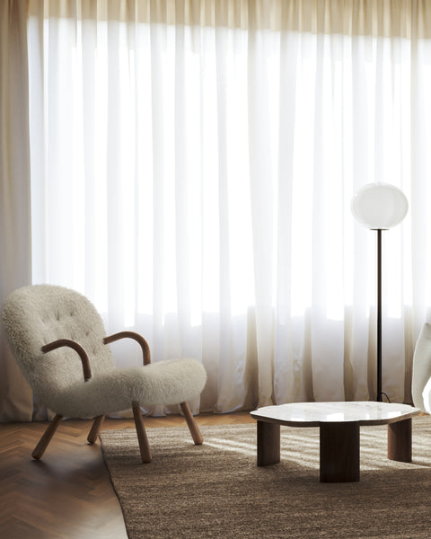 The Clam Chair draws its essence from classic Danish design, embodying the spirit of the 1940s era. Its continued popularity today is a testament to its enduring aesthetic, ergonomic finesse, and impeccable craftsmanship. Characterized by its welcoming curves and sumptuous upholstery, the Clam Chair serves as the ideal retreat at the close of a tiring day. Meticulously crafted with a hardwood frame and delicate tufting, this chair epitomizes durability and is poised to grace interiors for many decades to come.