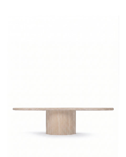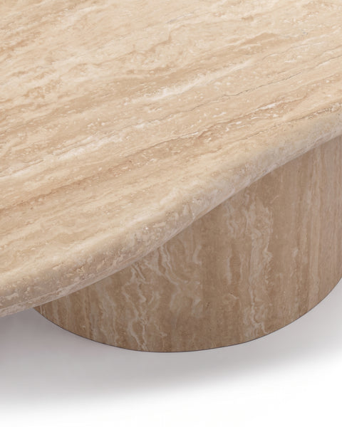 Faux-Travertine Concrete Surface: Fiber-reinforced concrete hand-finished to replicate the iconic pitted texture and warm tones of Italian travertine.
