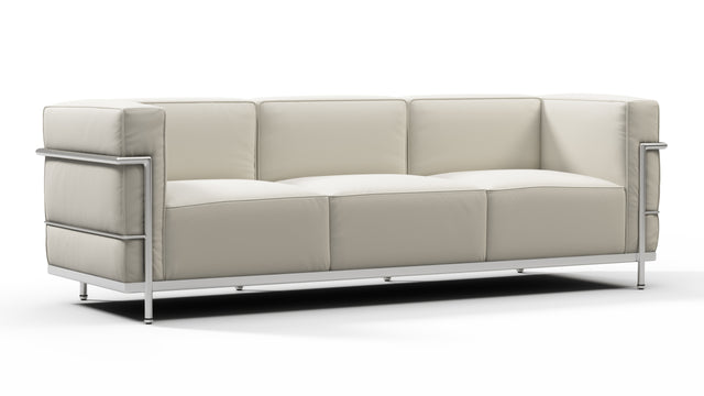 Inspired by the classic club chair, the tempting, modern form of the Grand Modele Sofa features deep seating and a minimalist, external steel frame.