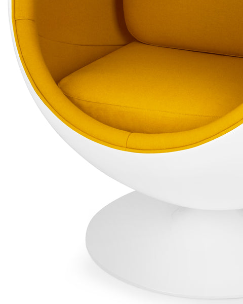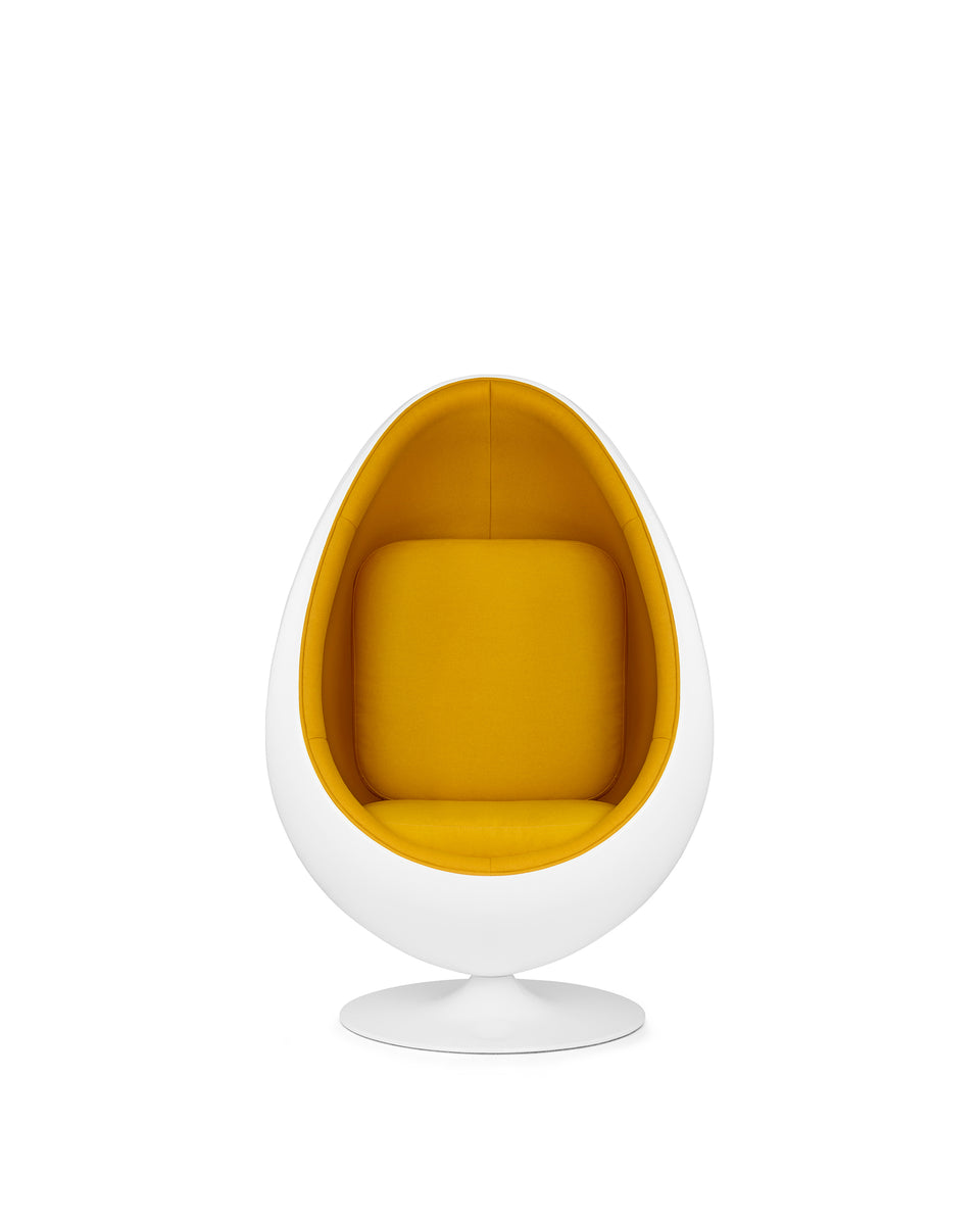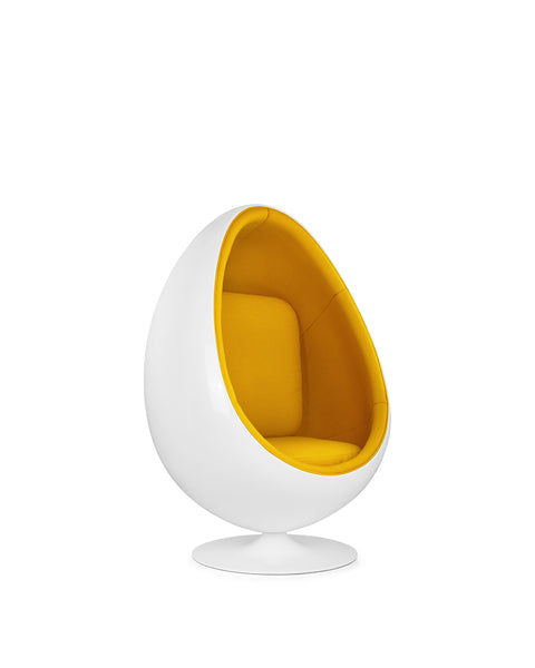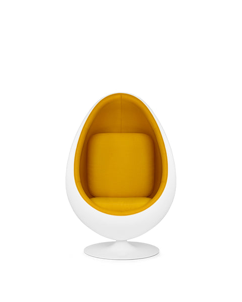 The Egg Pod Chair seamlessly blends 60s-inspired design with contemporary comfort. Its striking style features deep, interior curves in a vibrant color, encased in a smooth, rounded fiberglass shell. The chair swivels on a weighted base, adding a functional twist to its iconic, retro aesthetic. Available in various bold options, the interior color contrasts beautifully with the clean, white casing.