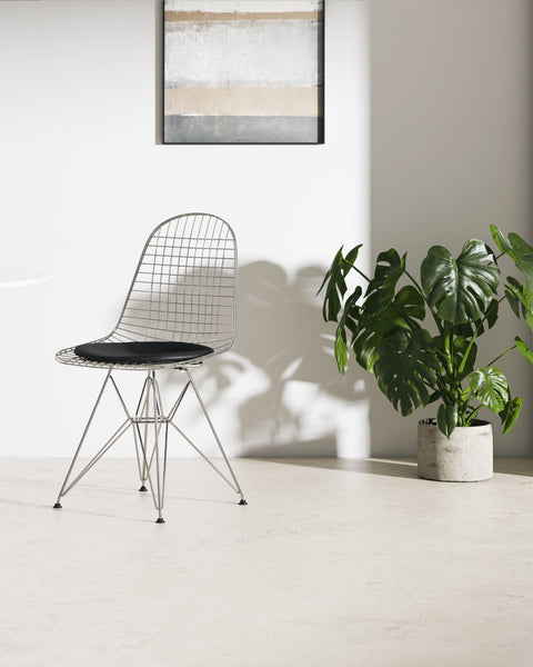 The Eiffel Wire Chair boasts a unique silhouette that’s at once breezy and industrial. Its strong construction comes from classic and high-quality materials. The end result? A one-of-a-kind chair that will last for years to come.