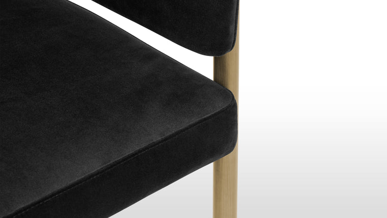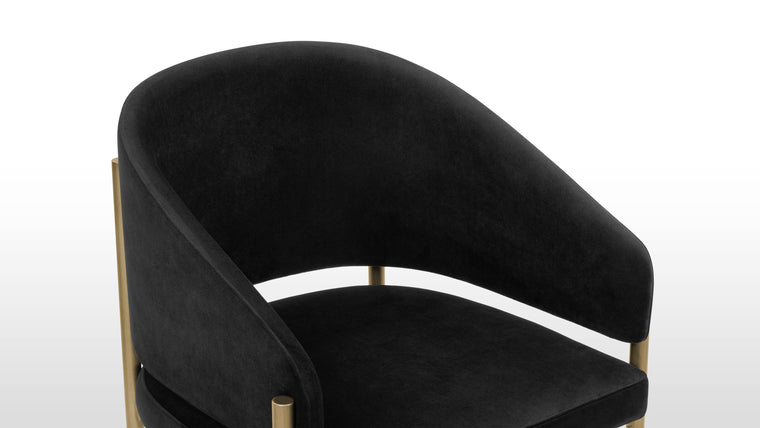 The antique brass legs of the Esme Dining Chair add a touch of vintage charm and sophistication. Their warm, burnished finish complements the richness of the upholstery, creating a harmonious interplay of textures and tones.
