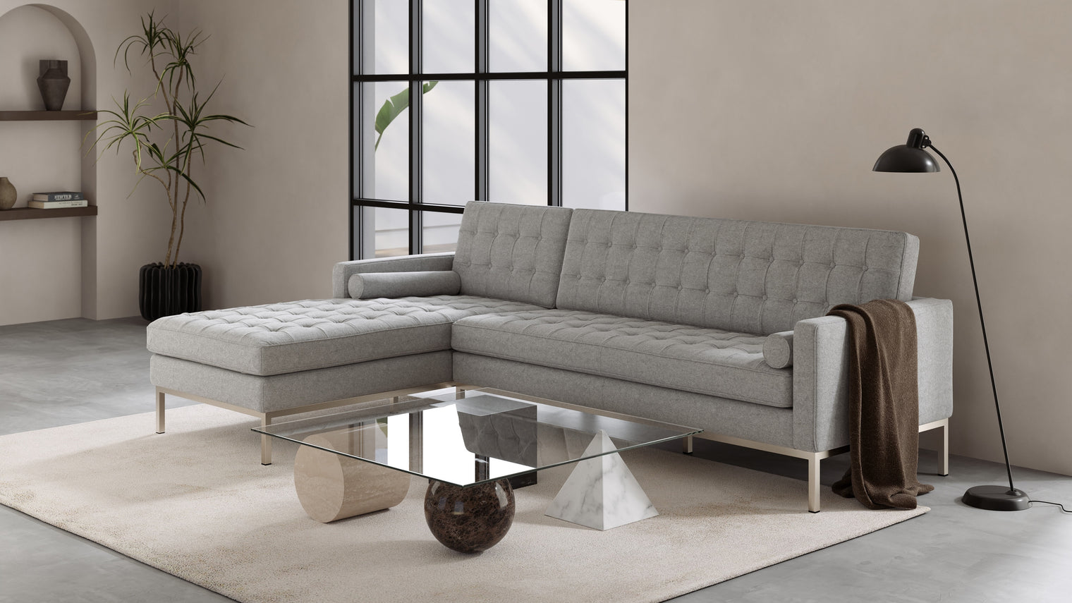 Florence Three Seater Sofa, Left Chaise, Light Gray Wool | Interior Icons