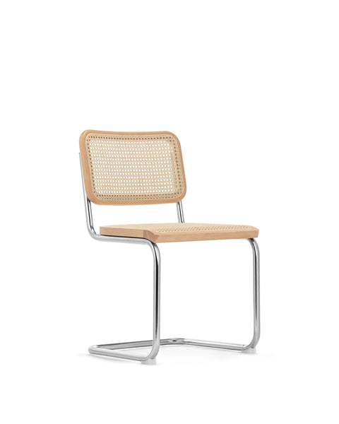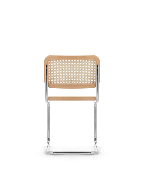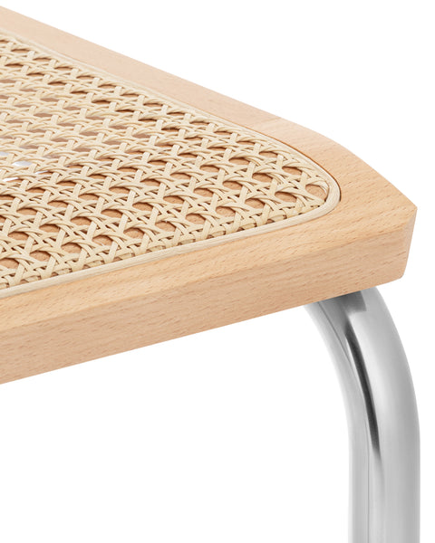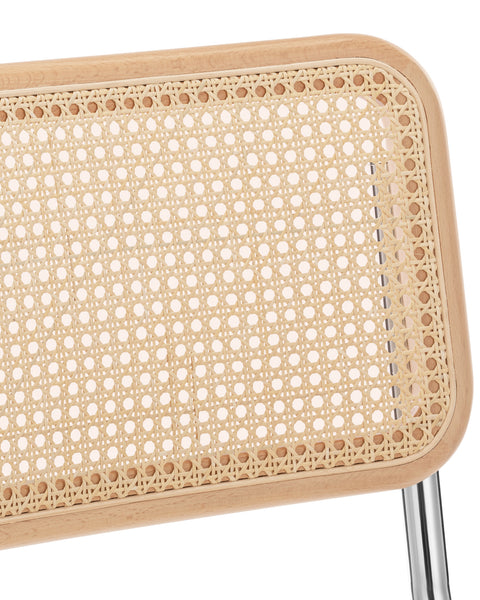 The Freya Chair features a distinctive cantilevered frame, a revolutionary design element that challenges traditional notions of chair construction. The sleek tubular steel frame, combined with the woven cane seat and backrest, creates a harmonious balance of form and function. Its lightweight structure and flexible materials provide both comfort and visual lightness.