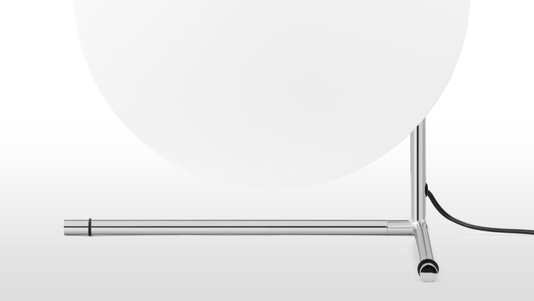 Expertly created with a steel frame and available in brushed brass, chrome and black finishes, this contemporary table lamp is finished with a statement blown-glass opal diffuser, perfectly balanced on its slender stem. The IC T2 Table Lamp is designed to illuminate with a soft, ambient glow.