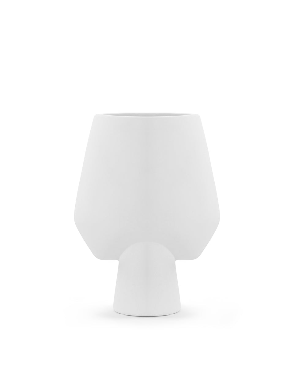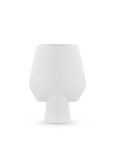 The Jens Vase is a ceramic piece featuring a quirky and whimsical design with a soft, organic silhouette. Its playful nature and wide, round shape is reminiscent of 1960s design, however the minimal color lends an unmistakably Scandinavian feel.