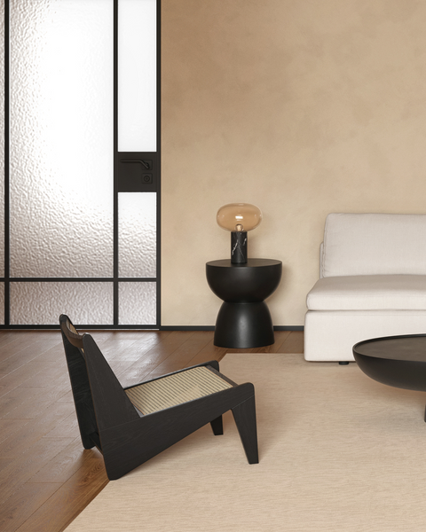 | Material | Solid ash with black painted finish, natural rattan seat and backrest |