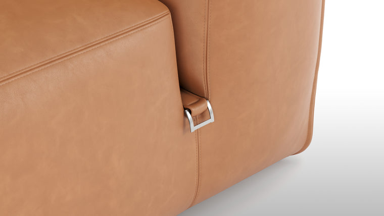 Available in both neutral-toned fabric and leather or vegan suede, the collection features a foam interior for deep comfort, with understated wooden legs and sleek metal buckles for easy configuration.