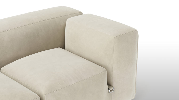 Available in both neutral-toned fabric and leather or vegan suede, the collection features a foam interior for deep comfort, with understated wooden legs and sleek metal buckles for easy configuration.