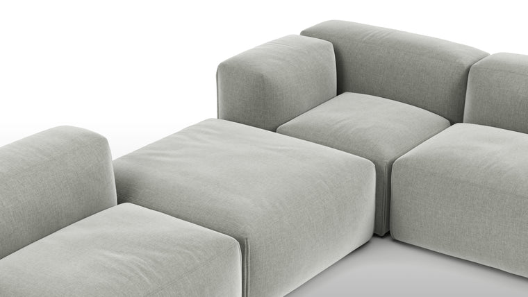 Designed for adaptability, the sectional’s modular system allows for easy rearrangement, making it perfect for customizable seating arrangements in various living spaces.