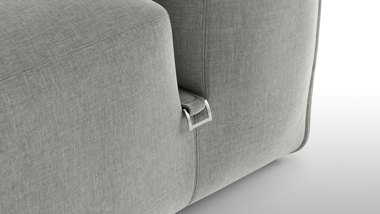 The Le Mura Sectional collection offers a versatile and stylish seating solution. Its foam interior provides deep comfort while requiring minimal maintenance, complemented by soft geometric shapes with padded centers for enhanced relaxation. The understated wooden legs and metal buckles allow easy rearrangement of modules, making it adaptable for any living space or configuration.