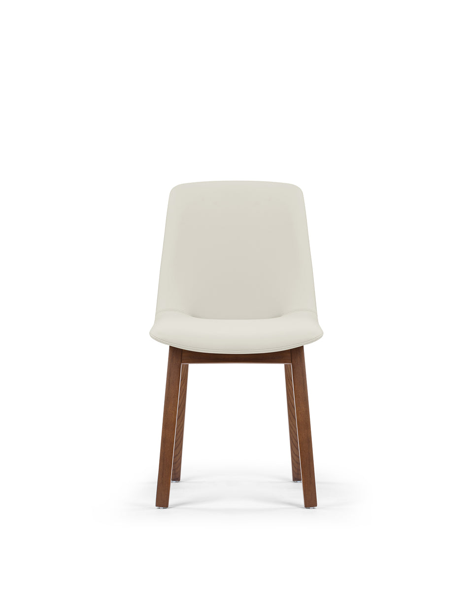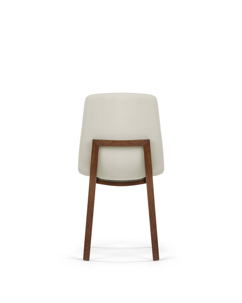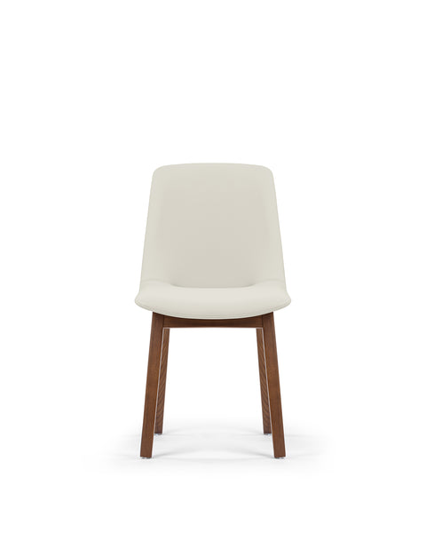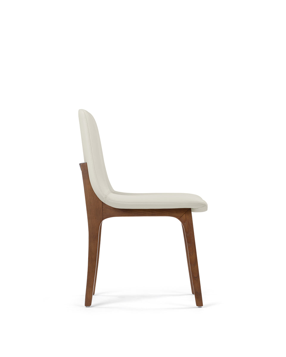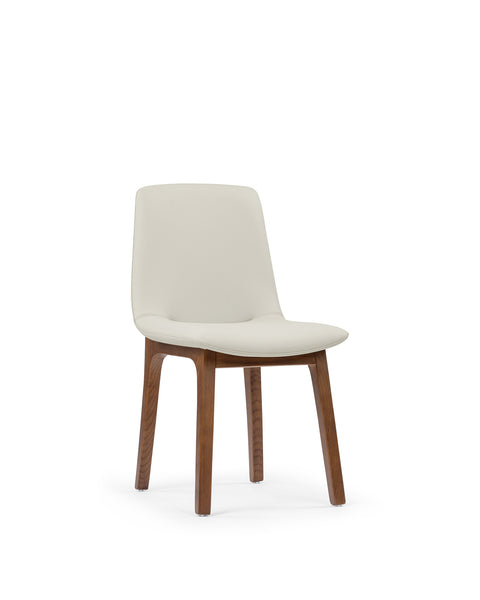 The LeBlanc Side Chair combines elegance with functionality, featuring leather upholstery available in two warm, neutral tones. Its minimalist design is complemented by either a walnut or oak frame, making it a perfect fit for modern interiors. Soft padding beneath the upholstery ensures comfort during long periods of use, and the chair's gentle curves provide ergonomic support for the back and seat.