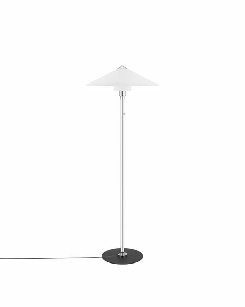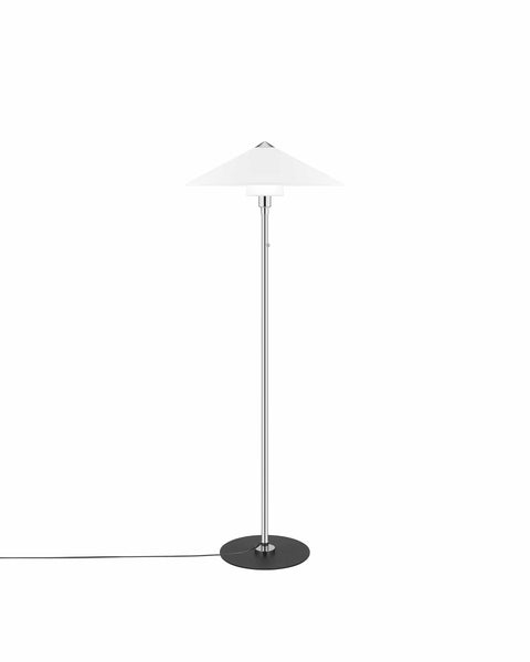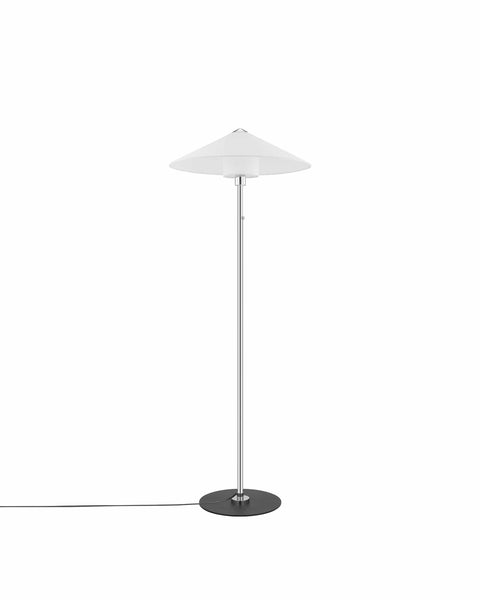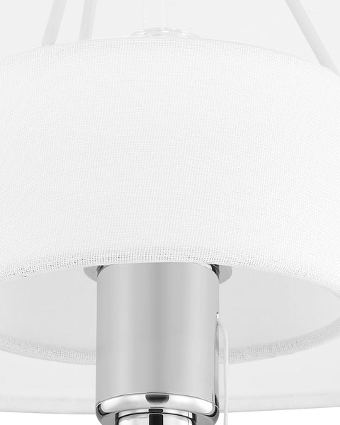 The Lutz Floor Lamp combines classic style with modern convenience. Its sleek chrome-finished metal body complements a traditional-shaped, white fabric shade, making it a versatile addition to any room. With its compact footprint, this lamp is ideal for small spaces, delivering style without taking up much room.