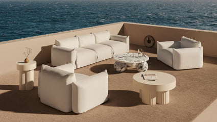 The Marenco Outdoor Collection defies convention with its bold architectural lines and unique silhouette, characterized by generous curves and organic shapes. Designed with the outdoors in mind, it boasts materials that are both stylish and weather-resistant, ensuring the same meticulous attention to detail and innovative approach to form and function as its indoor counterpart.