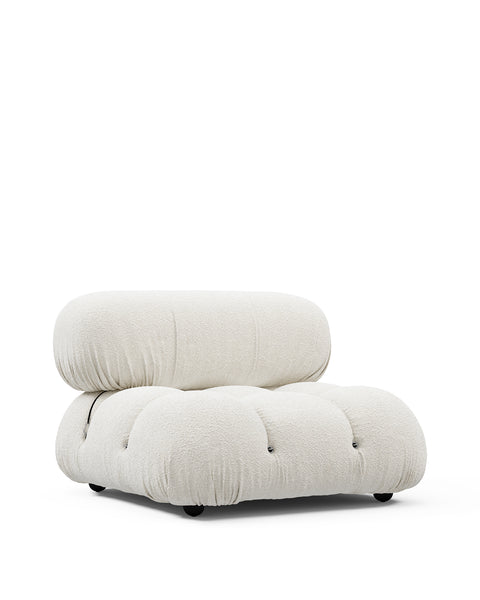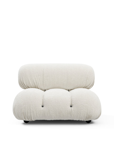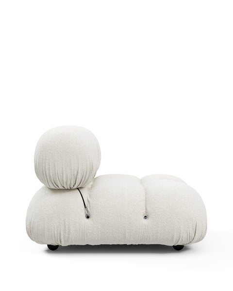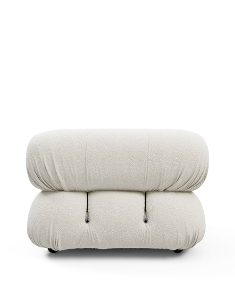 | Modular Instructions | Each section of the Mario Bellini Sofa is modular and is attached with string ties and carabiners. To assemble or rearrange your sofa, simply unclip the carabiners from one ring and attach to a corresponding ring on the module you wish to connect to. |