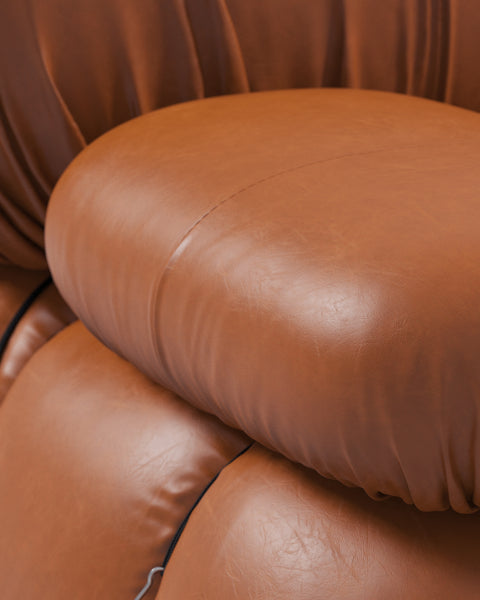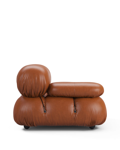 | Modular Instructions | Each section of the Mario Bellini Sofa is modular and is attached with string ties and carabiners. To assemble or rearrange your sofa, simply unclip the carabiners from one ring and attach to a corresponding ring on the module you wish to connect to. |
