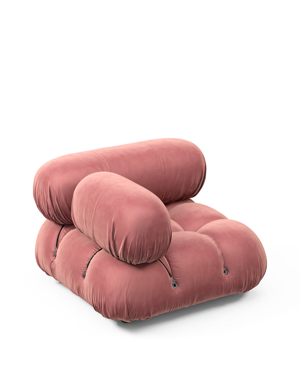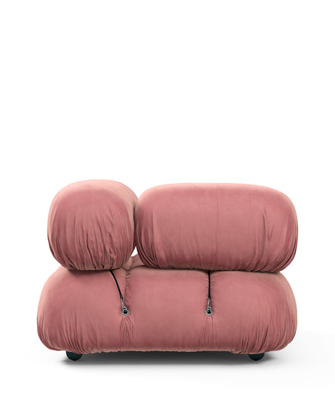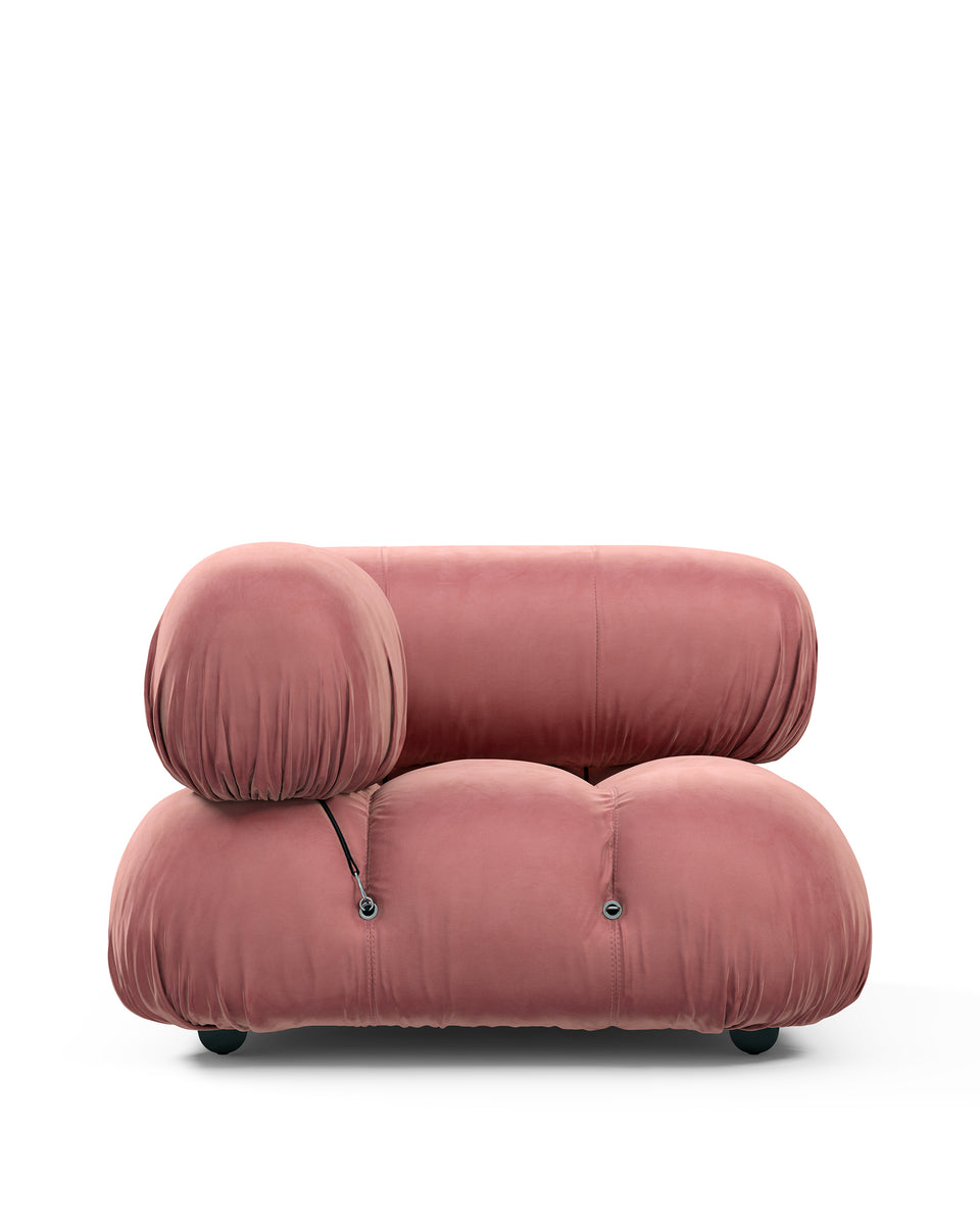 | Modular Instructions | Each section of the Mario Bellini Sofa is modular and is attached with string ties and carabiners. To assemble or rearrange your sofa, simply unclip the carabiners from one ring and attach to a corresponding ring on the module you wish to connect to. |