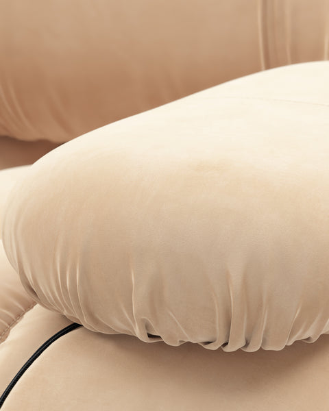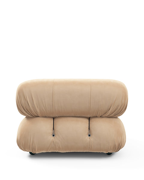 | Modular Instructions | Each section of the Mario Bellini Sofa is modular and is attached with string ties and carabiners. To assemble or rearrange your sofa, simply unclip the carabiners from one ring and attach to a corresponding ring on the module you wish to connect to. |