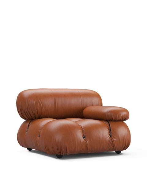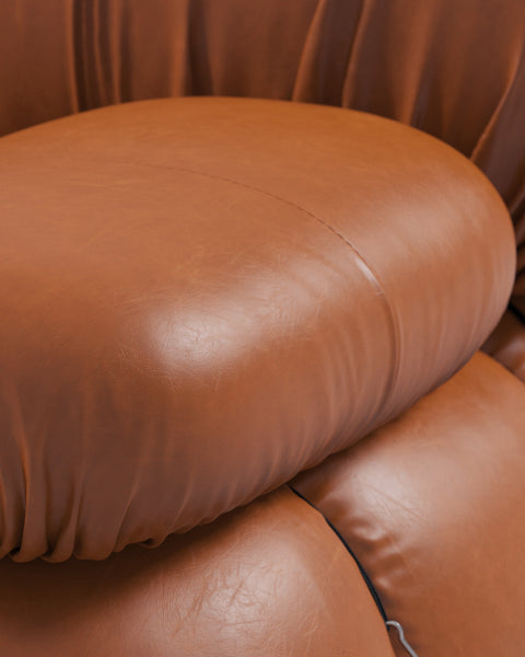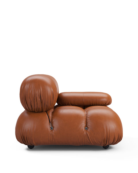 | Modular Instructions | Each section of the Mario Bellini Sofa is modular and is attached with string ties and carabiners. To assemble or rearrange your sofa, simply unclip the carabiners from one ring and attach to a corresponding ring on the module you wish to connect to. |