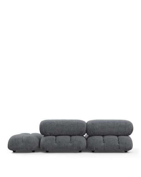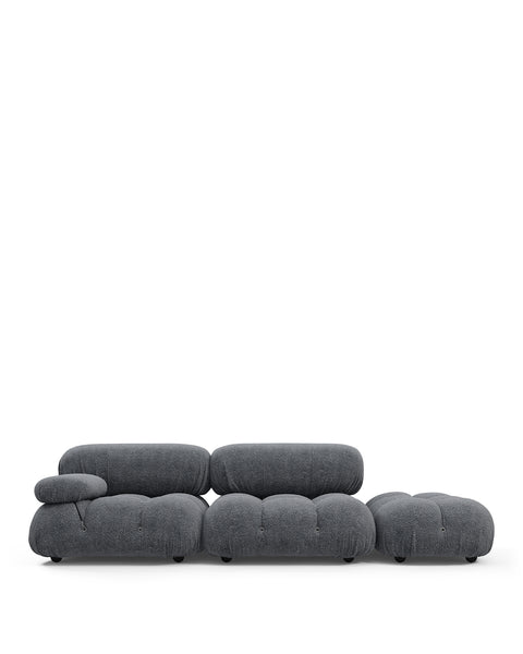 | Modular Instructions | Each section of the Mario Bellini Sofa is modular and is attached with string ties and carabiners. To assemble or rearrange your sofa, simply unclip the carabiners from one ring and attach to a corresponding ring on the module you wish to connect to. |