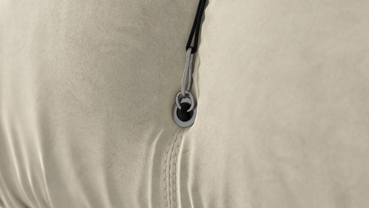 - Modular Instructions : Each section of the Mario Bellini Sofa is modular and is attached with string ties and carabiners. To assemble or rearrange your sofa, simply unclip the carabiners from one ring and attach to a corresponding ring on the module you wish to connect to.