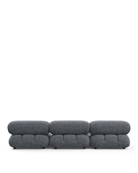 | Modular Instructions | Each section of the Mario Bellini Sofa is modular and is attached with string ties and carabiners. To assemble or rearrange your sofa, simply unclip the carabiners from one ring and attach to a corresponding ring on the module you wish to connect to. |