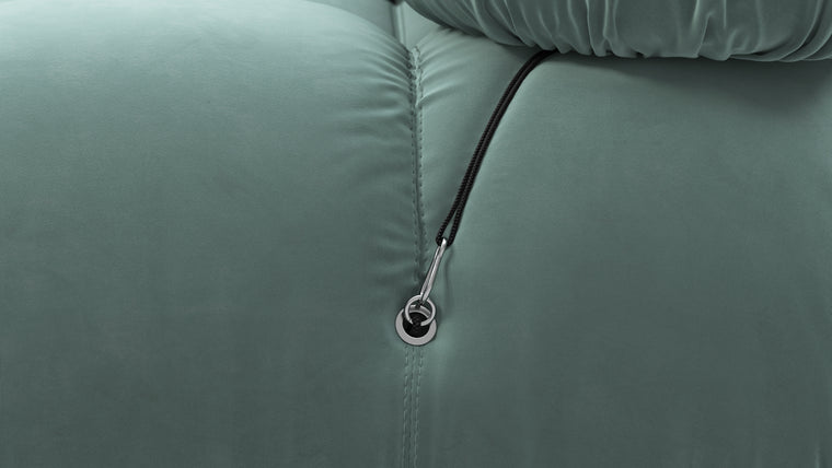 - Modular Instructions : Each section of the Mario Bellini Sofa is modular and is attached with string ties and carabiners. To assemble or rearrange your sofa, simply unclip the carabiners from one ring and attach to a corresponding ring on the module you wish to connect to.