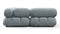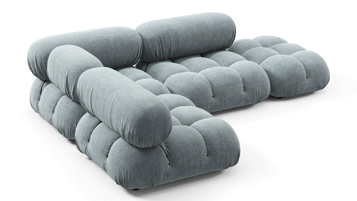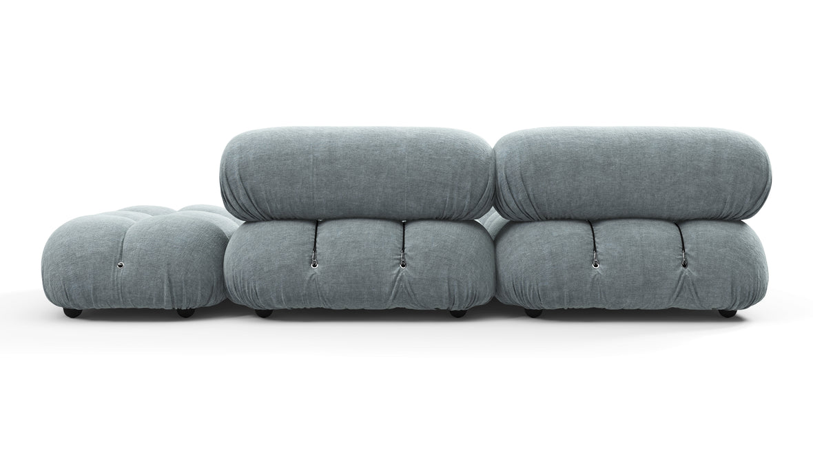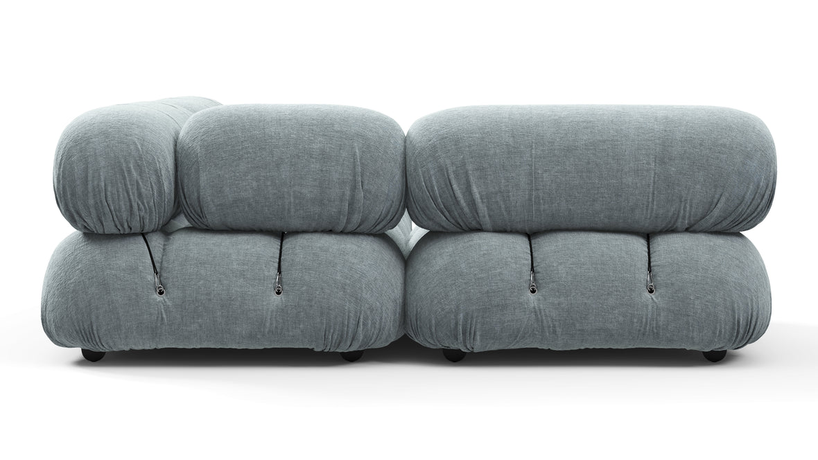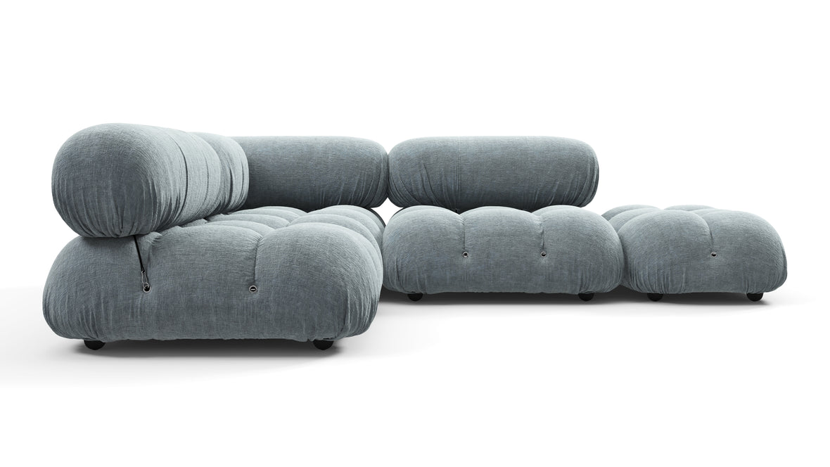 - Modular Instructions : Each section of the Mario Bellini Sofa is modular and is attached with string ties and carabiners. To assemble or rearrange your sofa, simply unclip the carabiners from one ring and attach to a corresponding ring on the module you wish to connect to.