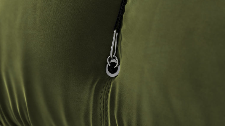 - Modular Instructions : Each section of the Mario Bellini Sofa is modular and is attached with string ties and carabiners. To assemble or rearrange your sofa, simply unclip the carabiners from one ring and attach to a corresponding ring on the module you wish to connect to.