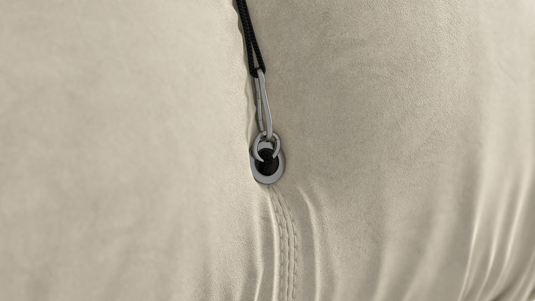 - Modular Instructions : Each section of the Mario Bellini Sofa is modular and is attached with string ties and carabiners. To assemble or rearrange your sofa, simply unclip the carabiners from one ring and attach to a corresponding ring on the module you wish to connect to.