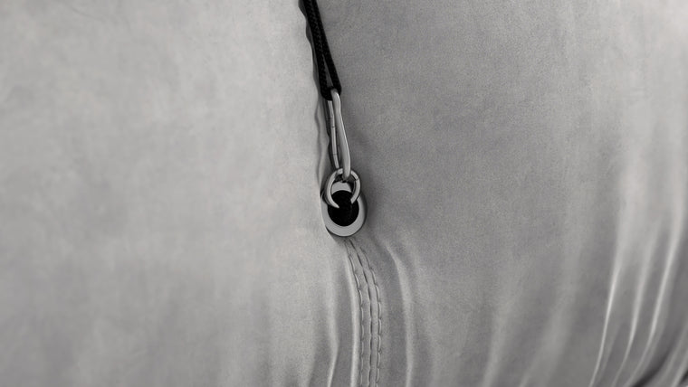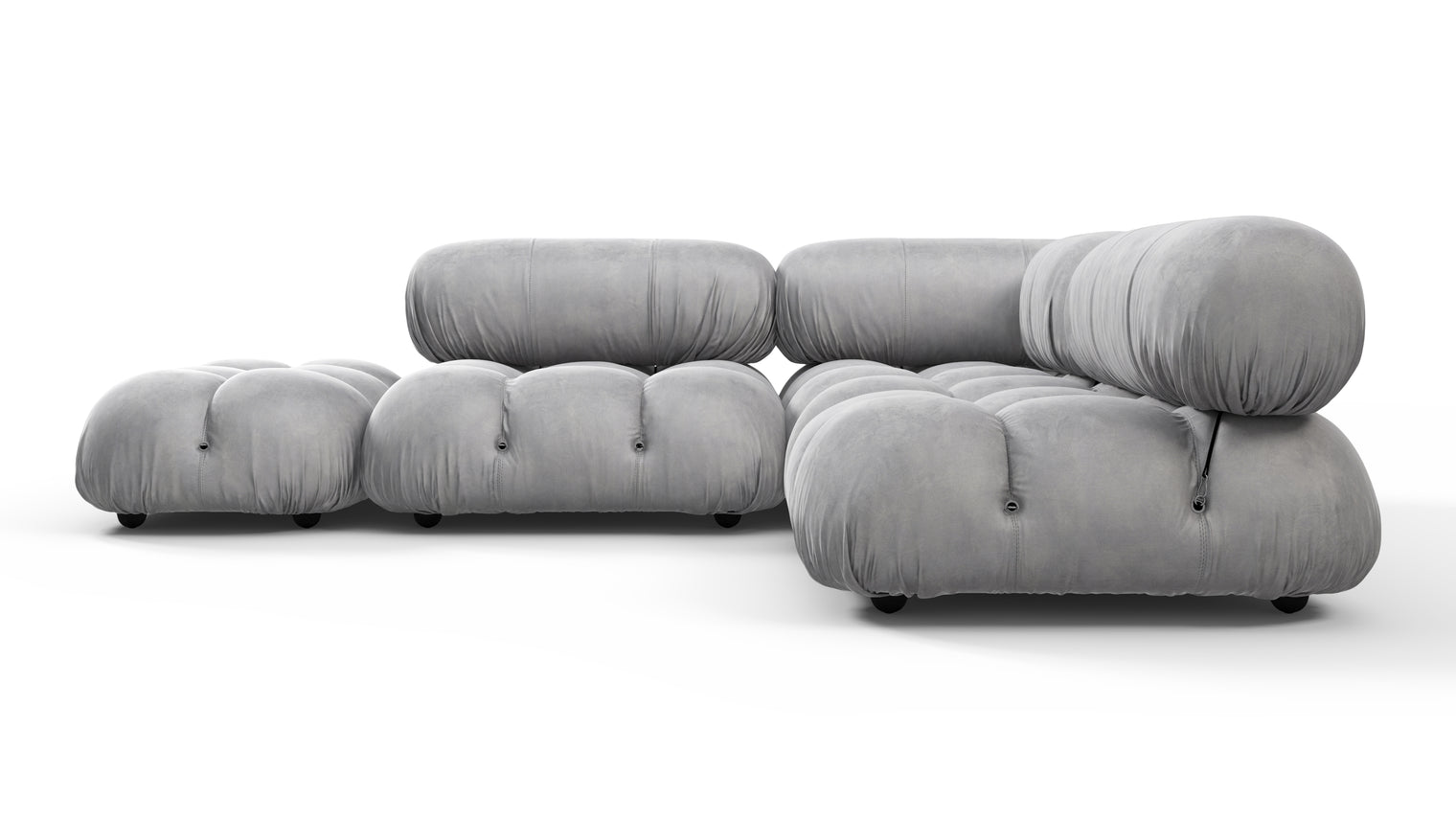 - Modular Instructions : Each section of the Mario Bellini Sofa is modular and is attached with string ties and carabiners. To assemble or rearrange your sofa, simply unclip the carabiners from one ring and attach to a corresponding ring on the module you wish to connect to.