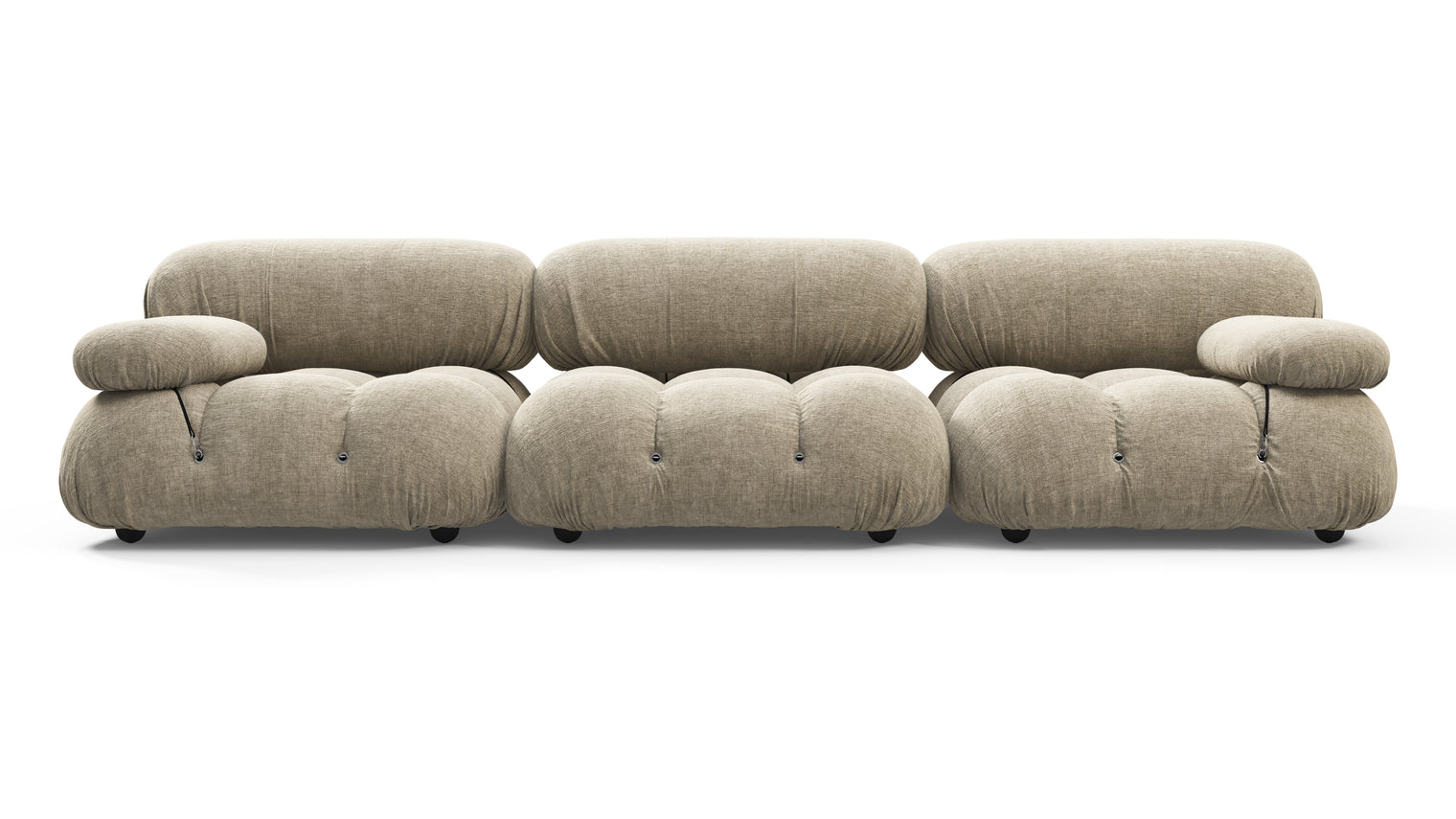 - Modular Instructions : Each section of the Mario Bellini Sofa is modular and is attached with string ties and carabiners. To assemble or rearrange your sofa, simply unclip the carabiners from one ring and attach to a corresponding ring on the module you wish to connect to.