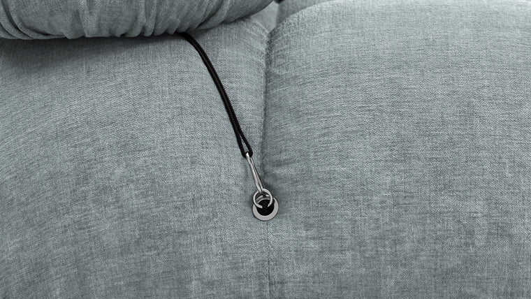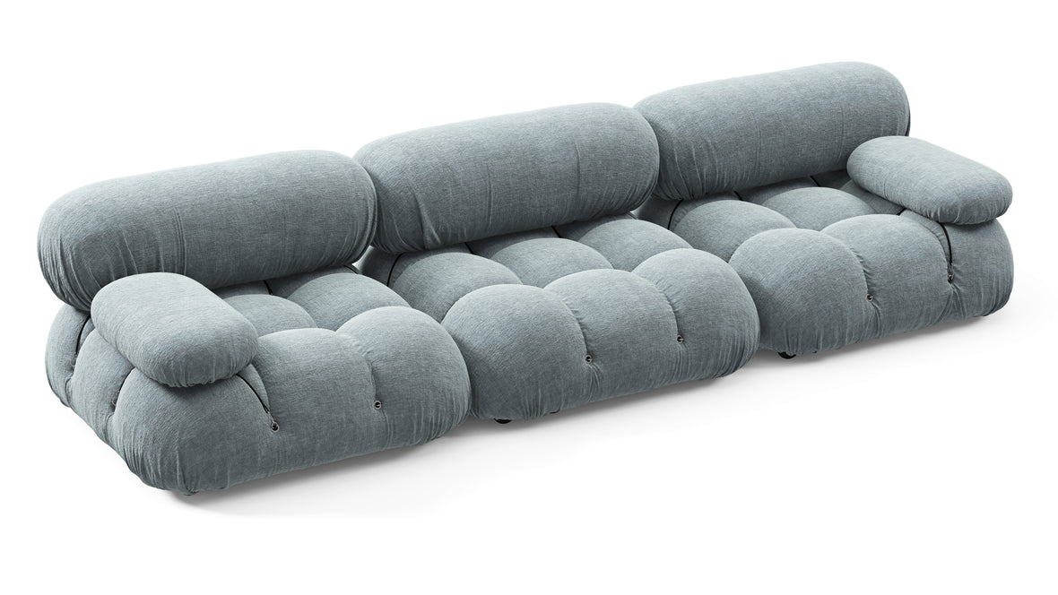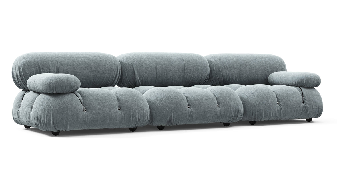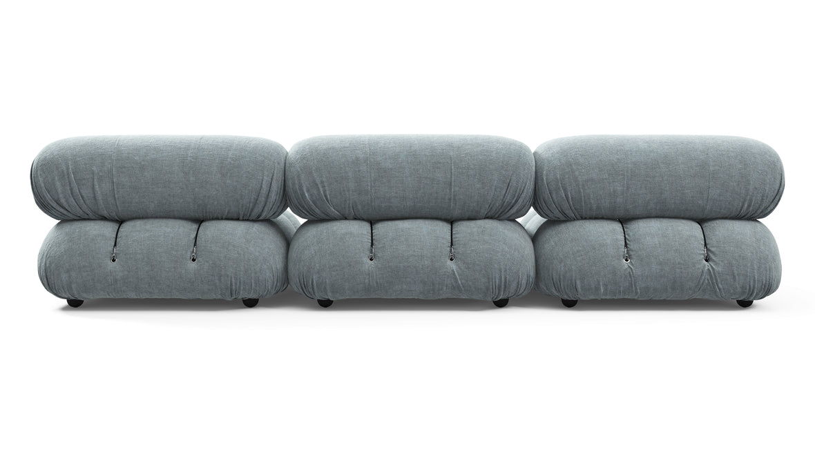 - Modular Instructions : Each section of the Mario Bellini Sofa is modular and is attached with string ties and carabiners. To assemble or rearrange your sofa, simply unclip the carabiners from one ring and attach to a corresponding ring on the module you wish to connect to.