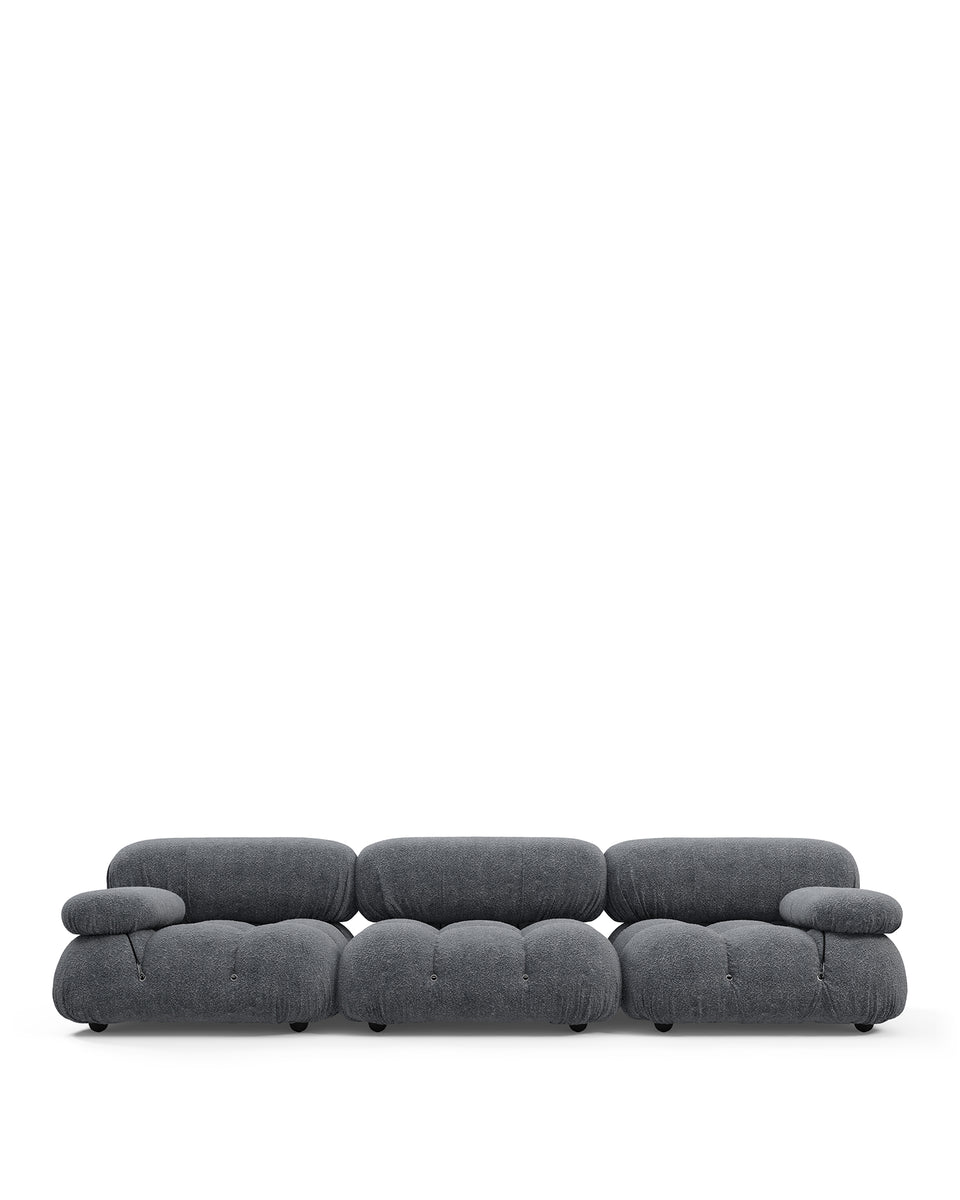 | Modular Instructions | Each section of the Mario Bellini Sofa is modular and is attached with string ties and carabiners. To assemble or rearrange your sofa, simply unclip the carabiners from one ring and attach to a corresponding ring on the module you wish to connect to. |