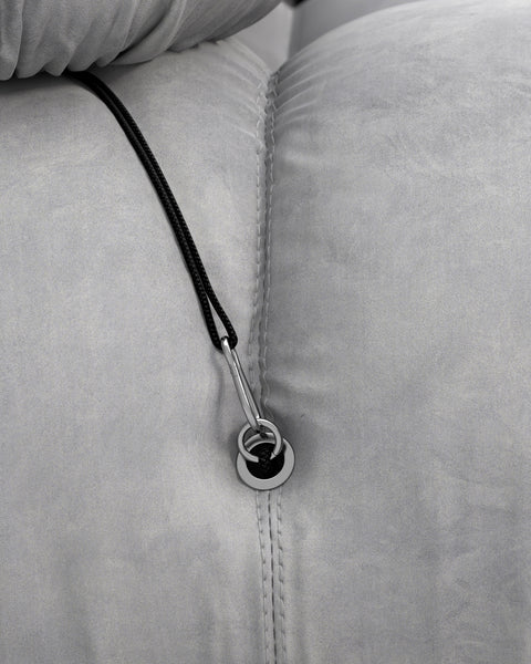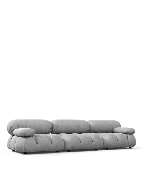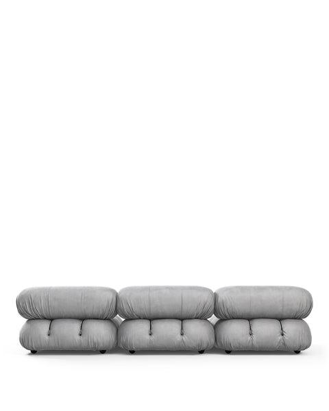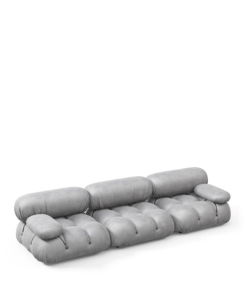 | Modular Instructions | Each section of the Mario Bellini Sofa is modular and is attached with string ties and carabiners. To assemble or rearrange your sofa, simply unclip the carabiners from one ring and attach to a corresponding ring on the module you wish to connect to. |