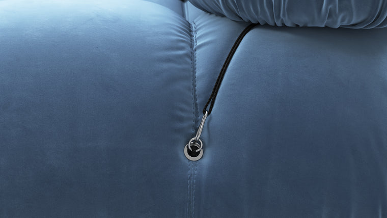- Modular Instructions : Each section of the Mario Bellini Sofa is modular and is attached with string ties and carabiners. To assemble or rearrange your sofa, simply unclip the carabiners from one ring and attach to a corresponding ring on the module you wish to connect to.