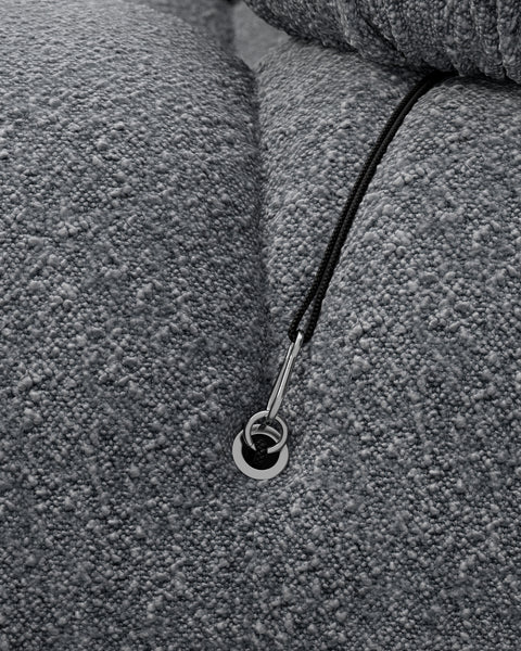 | Modular Instructions | Each section of the Mario Bellini Sofa is modular and is attached with string ties and carabiners. To assemble or rearrange your sofa, simply unclip the carabiners from one ring and attach to a corresponding ring on the module you wish to connect to. |